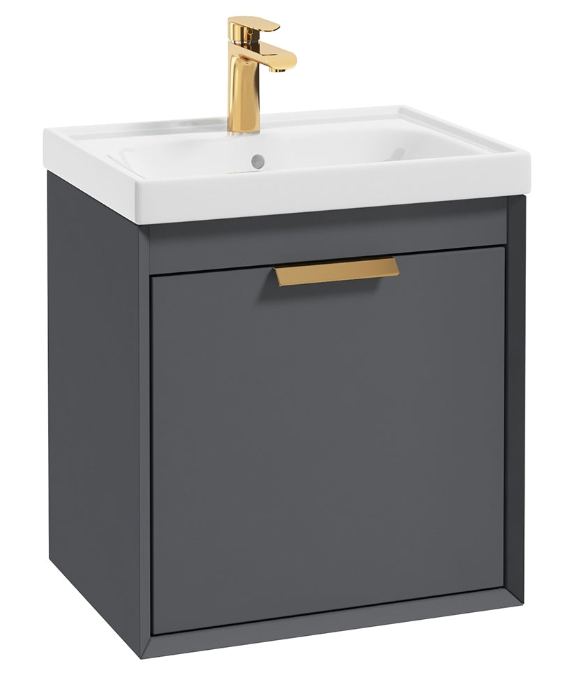 Fjord Midnight Grey Matt 50cm Wall Hung Vanity Unit-Brushed Gold Handle